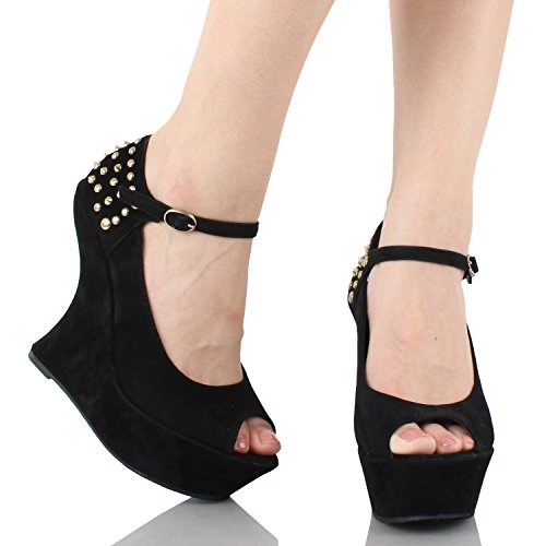 (Guilty Shoes)/Women's/Sandals/DIRECT FROM USA/Guilty Shoes Womens High Heel Platform Stud Studded Fashion Strappy Open Toe Punk Wedges-Sandals