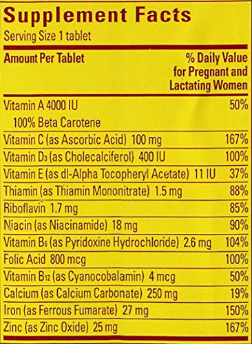 • Contains 100% RDA of folic acid; 150% of iron; and 167% of zinc per tablet serving