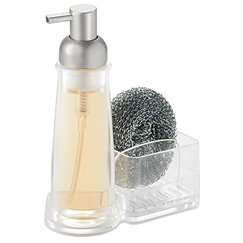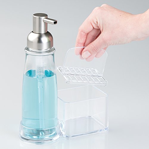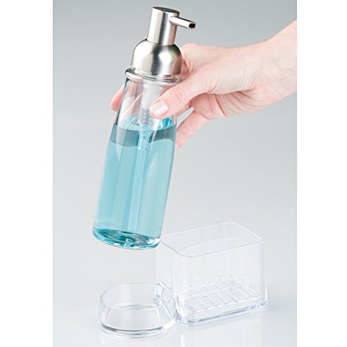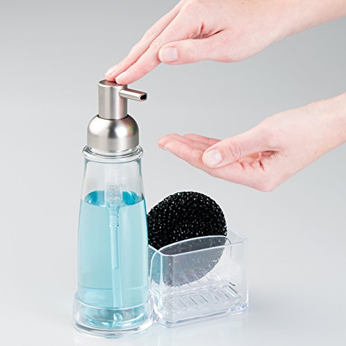 InterDesign Clarity Soap Dispenser Pump and Sponge & Scrubber Caddy - Kitchen Sink Organizer, Clear/Brushed
