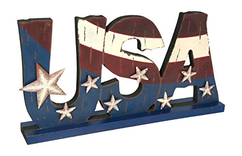 - Show your love for the USA with this patriotic stars-and-stripes standing tabletop sign.