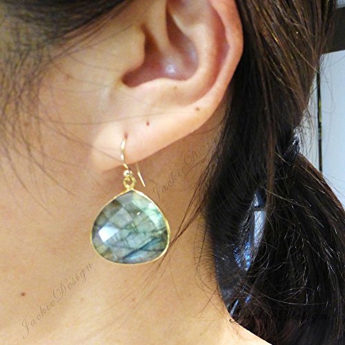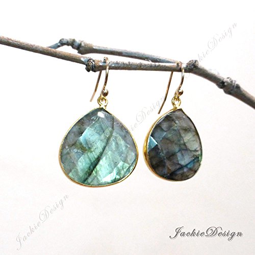-. Title : 20mm Pear Shape Flash Green Blue Labradorite Gold Filled Earrings ZZ14-A