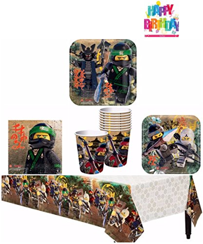 -. Title : L.E.G.O Ninjago Birthday Party Supplies Pack for 8 Guests - Lunch Plates, Dessert Plates, Lunch Napkins, Cups, Table Cover, and 1 Happy Birthday Tattoo