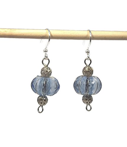 -. Title : 1-3/4" Dainty Blue Faceted Rondelle Dangle Drop Earrings, OOAK, One of a Kind