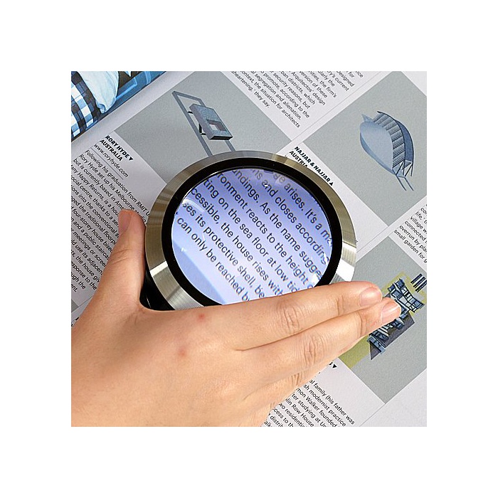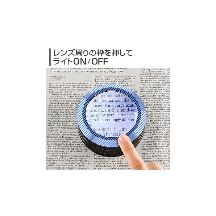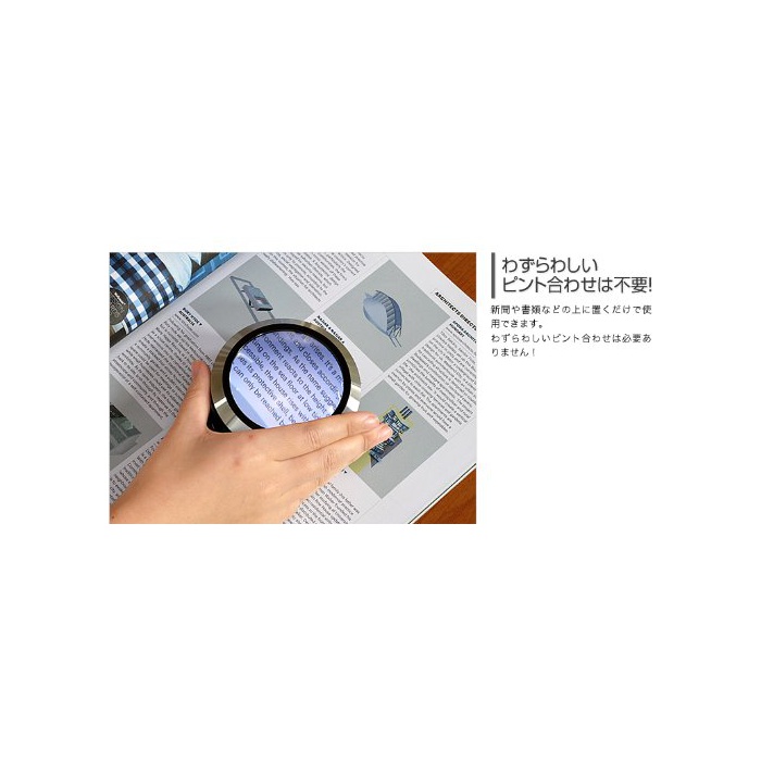 신문이나 서류 등의 문자를 확대해 보기 편리하게 할 수 있는 확대경입니다.확대율5배로 보기 편리한 직경7cm의 대형 광학 렌즈를 사용 하고 있습니다.