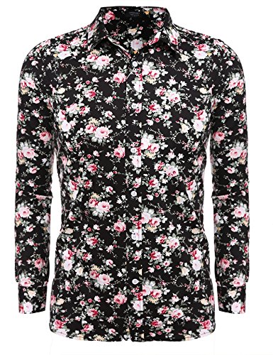 -. Title : Coofandy Mens Floral Slim Fit Long Sleeve Dress Shirt Casual Tops
