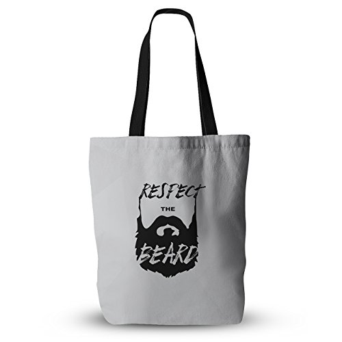 KESS InHouse Juan Paulo "Respect the Beard" Typography Black Gray Everything Tote Bag, 18" x 18", Multicolor