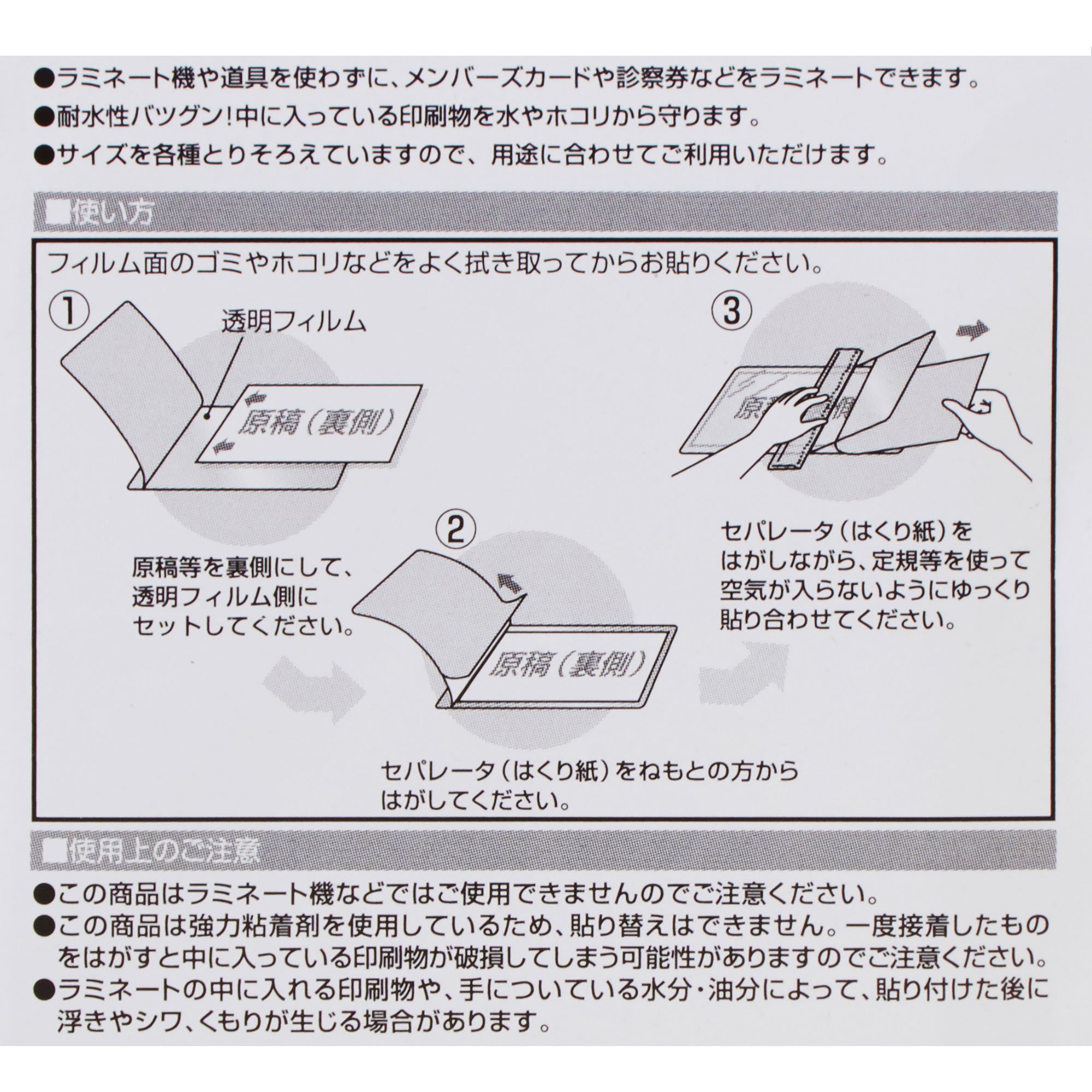 It is a size that can laminate business card size paper (55 mm × 91 mm).