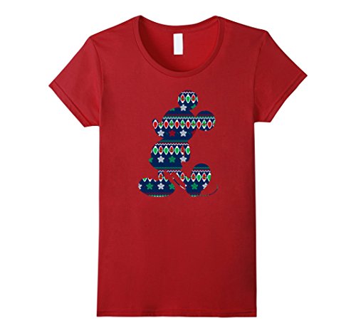 Womens Disney Mickey Mouse Christmas Light Outline T Shirt Small Cranberry