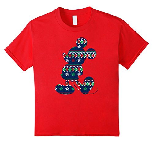 Kids Disney Mickey Mouse Christmas Light Outline T Shirt 6 Red