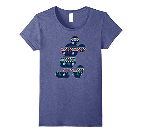 Womens Disney Mickey Mouse Christmas Light Outline T Shirt Large Heather Blue