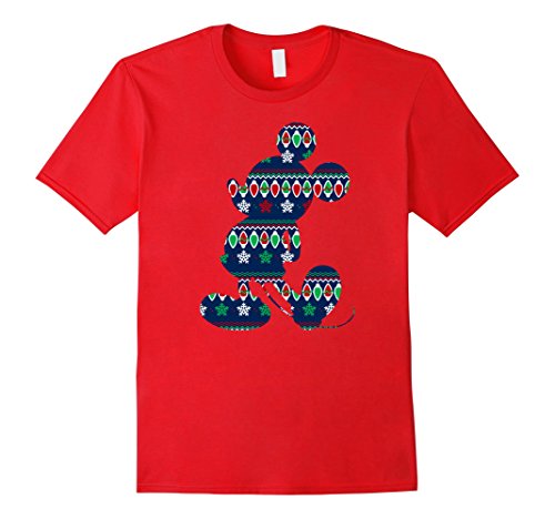 Mens Disney Mickey Mouse Christmas Light Outline T Shirt Small Red