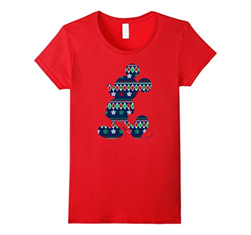 Womens Disney Mickey Mouse Christmas Light Outline T Shirt Small Red