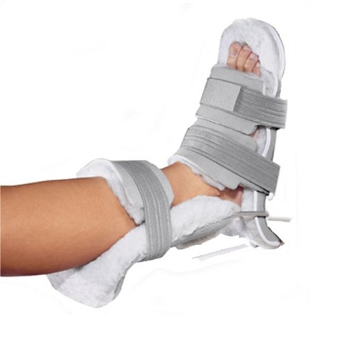 -. Feature : Malleable medial and lateral uP.R.Ights extend above mid-calf and are fastened to the lightweight injection molded plastic foot plate / Soft, padded poly/pile liner designed with a patented Achilles Relief Pad cradles he lower leg and provides maximum patient comfort / Rotation bar may be repositioned to assist with internal or external rotation of the hip or leg / Adjustable toe extension helps protect toes from bedding as needed / Fits right or left foot