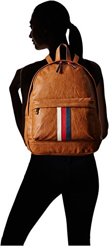 Men's' pu backpack with zipper and multi stripes detail on front pocket
