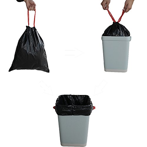 Begale 4 Gallon Drawstring Flat Bottom Trash Bags, Thick (Black, 110 Counts/ 3 Rolls)