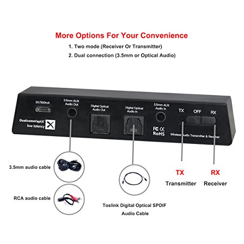Liwithpro Bluetooth Transmitter and Receiver Digital Optical TOSLINK and 3.5mm Wireless Audio Adapter for TV or Home Stereo System aptX Low Latency Black