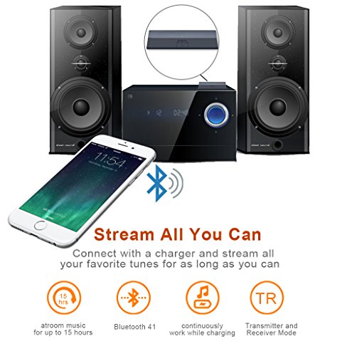 TRANSMITTER AND RECIEVER, 2 in 1 adapter to use as either transmitter or receiver, powered by the latest Bluetooth 4.1, stream real time audio to two Bluetooth headphones or speakers simultaneously without disturbing other people in the room
