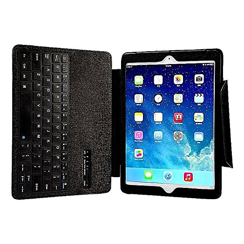 Overview: 1) Decent Oracle lines textured leather case offers complete protection for your iPad Air . 2) User-friendly slim Bluetooth keyboard allows for easy typing; the keyboard is both portable and compatible with other IOS, Android OS, PC . 3) Real laptop style keys; ABS keyboard material; Detachable Velcro tab removable design offers hands-free viewing, improving your typing experience; 4) Bluetooth 3.0 interface, Built-in Lithium Battery 5) Features a on/off sliding switch, connect button, LED indicator lights for power, charge, caps lock, Bluetooth connection. 6) Enhance your iPad Air to be a laptop. 7) Complimentary 2.5 Feet USB Micro charging cable, allows for easy charging from your PC. 8) IPad Air not included with case.