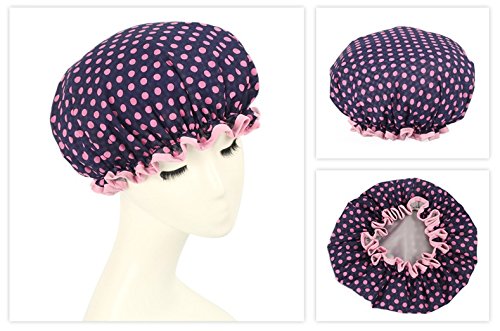 Stylish Waterproof Double Layer Shower Cap (Blue Dot)