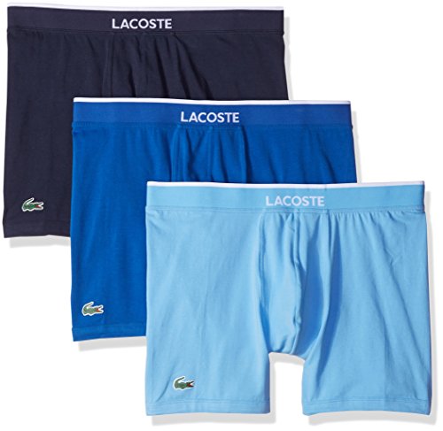Lacoste Men's 3 Pack Ctn/Stch Boxer Brief, Light Blue/Blue/Navy, X-Large
