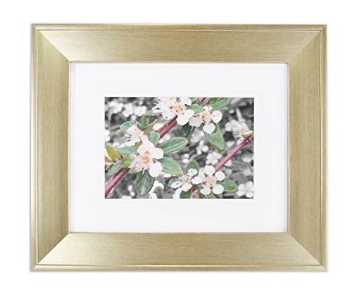 Golden State Art, 8x10 Frame for 5x7 Picture with White Mat, Table-Top Easel Stand, & Real Glass (Champagne Gold)