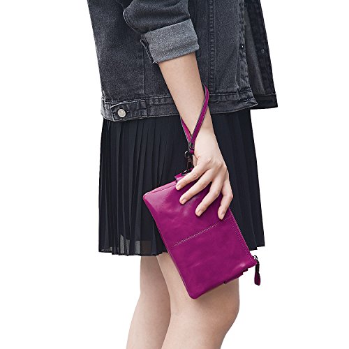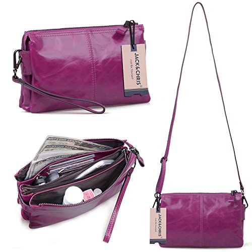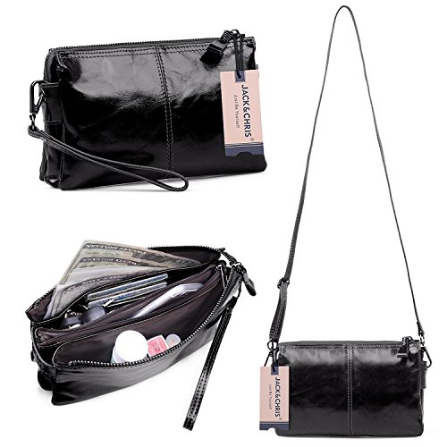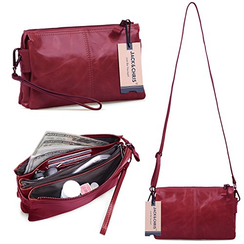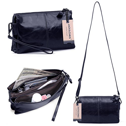 | JackChris Women's Small Leather Wristlet wallet Clutch Handbag Shoulder Bag Purse, WBGT045 |