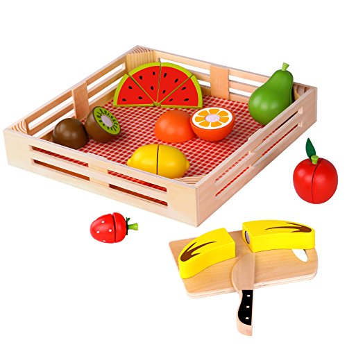 -. Title : Timy Wooden Cutting Fruit Set Play Food Kitchen Accessory Pretend Play Toys for Toddlers with Knife and Basket