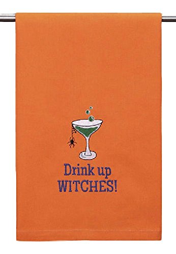 Drink Up Witches! Martini Drink with Spider Halloween Kitchen Bar Dish or Hand Guest Towel, 16 Inch X 25 Inch, Orange & Black