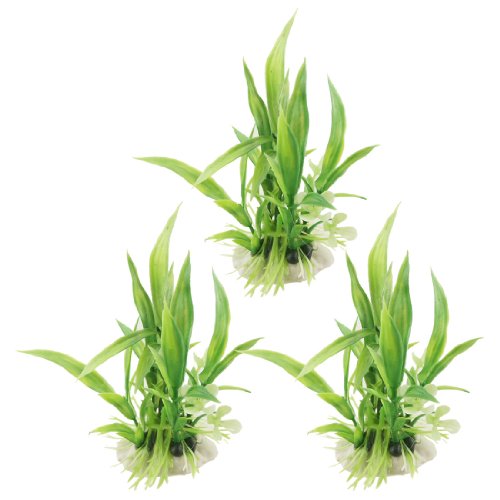 Uxcell 3-Piece Plastic Aquarium Narrow Leaves Plant/Grass, Green