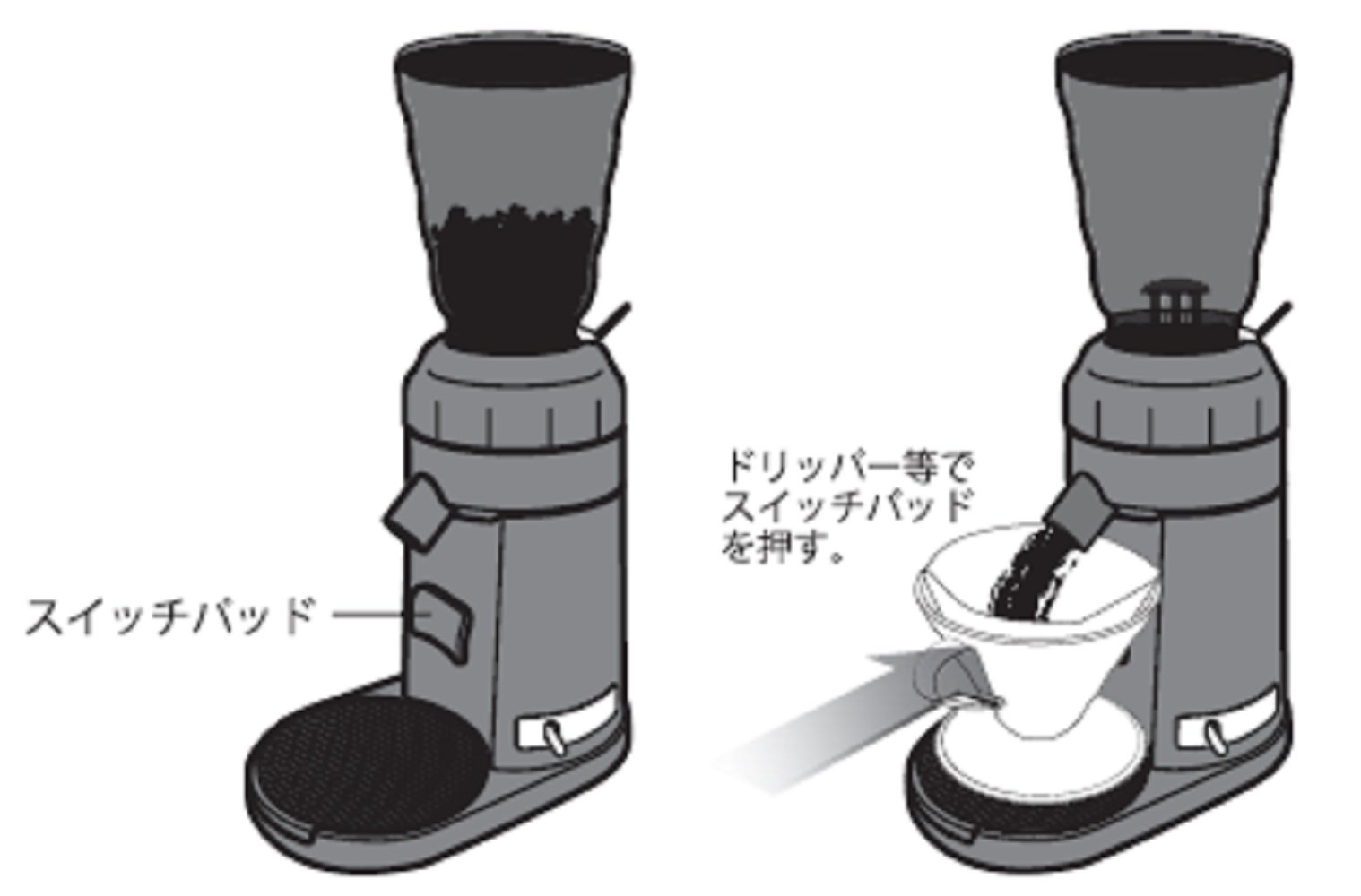 When the power switch "AUTO", it operates by directly pushing the switch pad with a dripper or container, and can receive direct coffee powder.