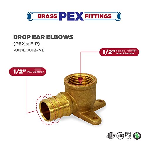 Everflow PXDL0012-NL 1/2 Inch X 1/2 Inch Drop Ear Elbows PEX X FIP, Lead Free DZR Brass Construction, Barb connection, Compatible w/ PEX Pipe, Low-Cost Plumbing Connection, Durability, Easy to Install