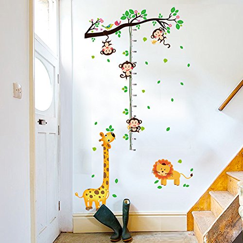 BAYCHEER Height Measurement Growth Chart Tree Animal Paradise Cartoon Monkeys Lion Giraffe Wall Decal Decor Wall Stickers Peel and Stick Removable for Nursery Playroom Bedroom Living Room, 60x90cm