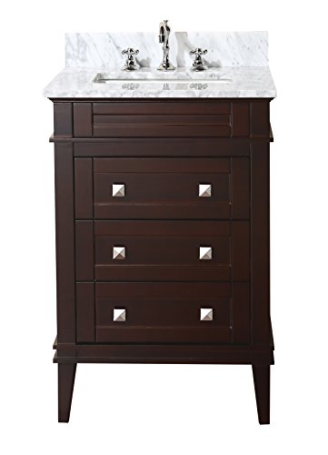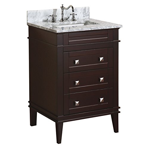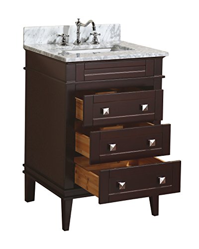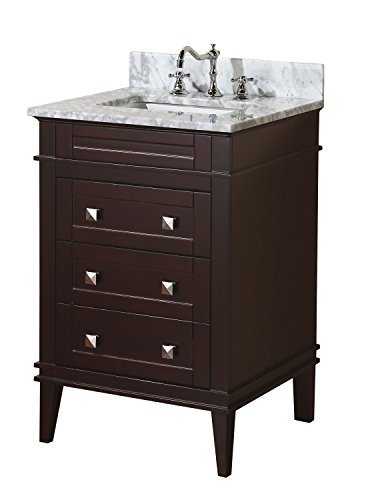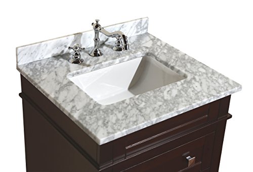Kitchen Bath Collection KBC-L24BRCARR Eleanor Bathroom Vanity with Marble Countertop, Cabinet with Soft Close Function & Undermount Ceramic Sink, 24", Carrara/Chocolate