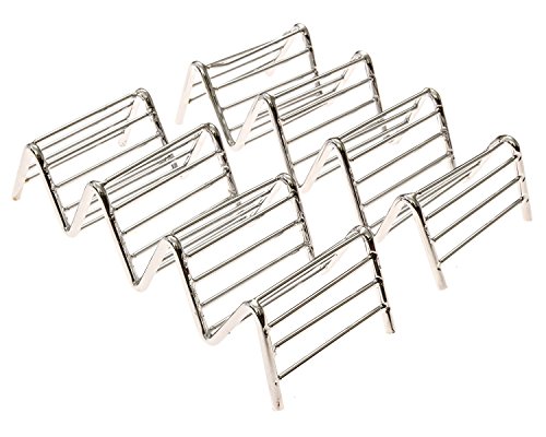 -. Feature : This food rack keeps your tacos, buns, Hot Dogs and more uP.R.Ight to prevent them from getting soggy and messy when Preparing or Serving / Keeps tacos shells uP.R.Ight so you can easily fill the shell without making a mess. Fits nicely on a standard plate leaving plenty of room for side items / Made from sturdy stainless steel - Safe enough to place the rack on the oven or grill to stay warm so you can enjoy a perfect combination of gooey melted cheese and a deliciously crisp shell / Makes filling Tacos quick and easy - Stands shells uP.R.Ight so you can fill them in the rack - The sides of racks allow air to circulate, so shells stay crispacos quick and easy / This makes filling the taco easier,a must buy for taco lover