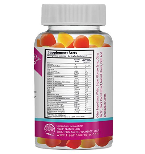 ★★★ ORDER NOW AND SAVE 55% OFF!! ORDER NOW AND SAVE 55% OFF! THIS IS A LIMITED TIME OFFER!! Health Nurture Multivitamin contains all Essential Daily Vitamins - Manufactured in the USA in a GMP certified facility. GLUTEN FREE - NO ARTIFICIAL COLORS - ORANGE, CHERRY & STRAWBERRY FLAVORED GUMMIES.