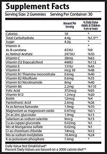 Our multivitamin gummies for adults apart from range of multivitamins available in the market is the fact that most nutrients included in our supplement fulfill 100% of their daily value requirement