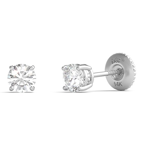 -. Title : Diamond Studs Forever 14K White Gold Solitaire Earring Studs Screw Backs (IGI USA Certified GH/I3)
