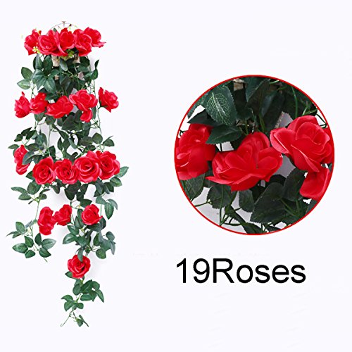 Greentime Fake Flowers 40" 19 Heads Artificial Rose Garland Wall Hanging Silk Flowers Rattan Ivy Vine for Wedding Party Garden Decoration (Red)
