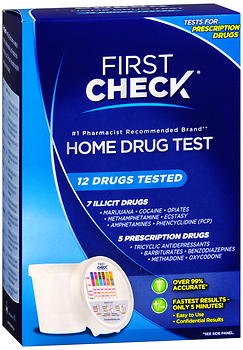 Studio : FIRST CHECK DIAGNOSTIC LL Publisher : FIRST CHECK DIAGNOSTIC LL Binding : Health and Beauty Product Description First Check offers a variety of home drug testing solutions, providing results in just 5 minutes for the possible use of 7 illicit drugs and 5 prescription drugs that are most commonly abused. Contains: 1 First Check Drug Test lid, 1 cup for sample collection, 1 instruction insert, 1 pre-addressed mailing box, 1 confirmation identification label, 1 plastic transportation bag, confidential confirmatory test included in purchase price. 0