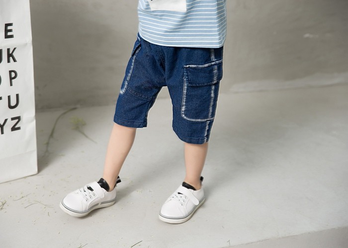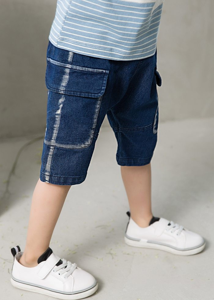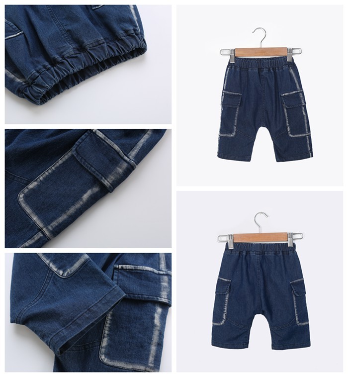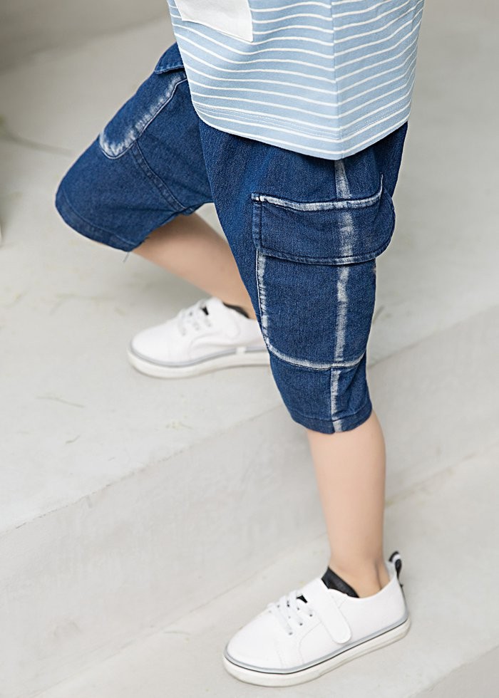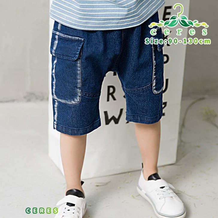 【製品仕様】■商品説明カジュアルダメージ加工楽チンなウエスト総ゴムデザインこれからの季節に重宝するハーフ丈パンツ! ■サイズ/寸法平置採寸 【90】ウェスト:25cm ヒップ:36cm 総丈:35cm 【100】ウェスト:26cm ヒップ:38cm 総丈:37cm 【110】ウェスト:27cm ヒップ:40cm 総丈:39cm 【120】ウェスト:28cm ヒップ:42cm 総丈:41cm 【130】ウェスト:30cm ヒップ:44cm 総丈:43cm■素材/材質デニム■色ブルー