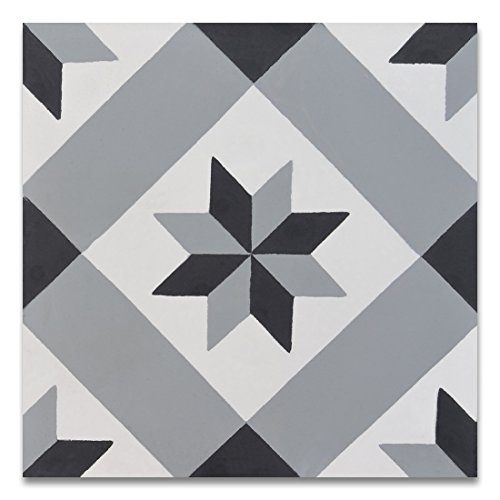 Moroccan Mosaic & Tile House CTP15-01 KotoubiaCTP15-01 Kotoubia 8’’x8’’ Handmade Cement Tile in Gray and White (Pack of 12), White Gray