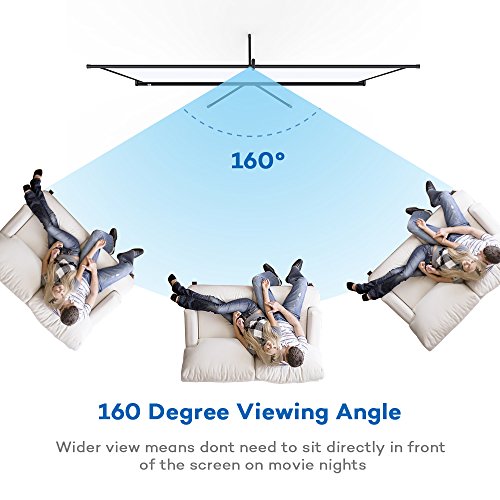 1.1 Gain with 160° Viewing Angle The screen reflects no more light than a white board thanks to the 1.1 gain that diffuses light more evenly over a wider viewing angle. The extended 160° angle eliminates the need to sit directly in front of the screen like many other old projectors so everyone can see on movie nights.