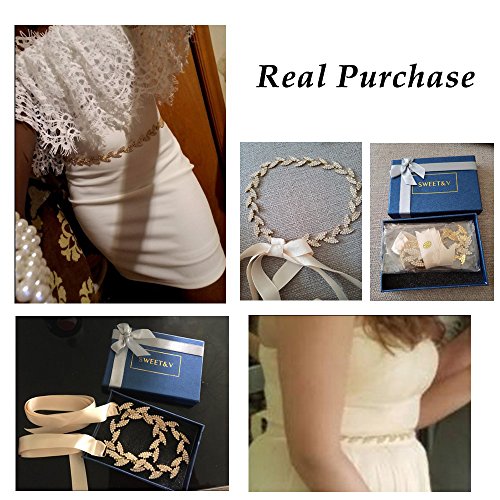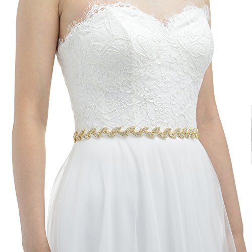SWEETV Rhinestone Wedding Dress Belt Leaf Bridal Sash Belt Women Clothing Accessories, Gold