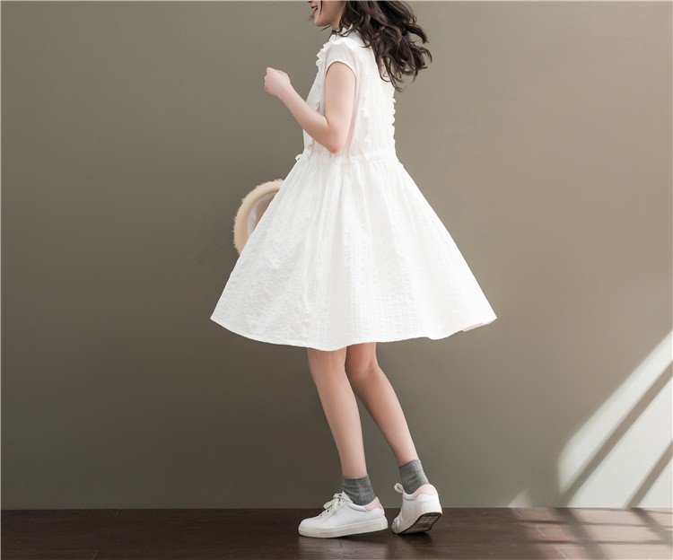 ワンピース 膝丈 レディース 大きいサイズ ワンピース 結婚式 チュニックリゾート ワンピース 半袖 森ガール 2018春夏新作 ワンピース 大きいサイズ レディース リゾートワンピース商品詳細素材:綿100%袖丈:半袖柄:無地季節:春夏秋カラー:ホワイト、ネイビーサイズ:M L XL 2XL産地:中国サイズ参照表M 着丈92cm バスト92cm 肩幅37cm 袖口36cm 裾周り210cmL 着丈93cm バスト96cm 肩幅38cm 袖口37cm 裾周り210cmXL 着丈94cm バスト100cm 肩幅39cm 袖口38cm 裾周り220cm2XL 着丈95cm バスト104cm 肩幅40cm 袖口39cm 裾周り220cmご注意:個人採寸のため、1~3cmの誤差は正常範囲内となりますが、ご了承ください。ワンピース 膝丈 レディース 大きいサイズ ワンピース 結婚式 チュニックリゾート ワンピース 半袖 森ガール 2018春夏新作 ワンピース 大きいサイズ レディース リゾートワンピース