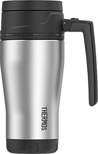 The thermos brand 16 ounce element vacuum insulated travel mug features durable, double wall stainless steel construction with an ergonomically-designed handle that is comfortable to grip. Thermos vacuum insulation technology will keep your hot drinks hot for up to 5 hours and your cold drinks cold for up to 9 hours. The unique, 360 degree lid allows you to sip your drink from any direction and a locking release button lets you remove the lid for easy cleaning.