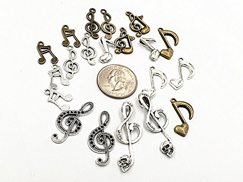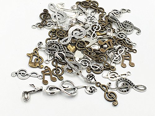 Kinteshun Alloy Multistyle Musical Notation Symbol Charm Pendant Connector for DIY Jewelry Making Accessaries(100 Gram,Antique Silver&Bronze)