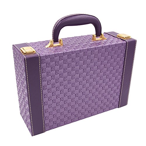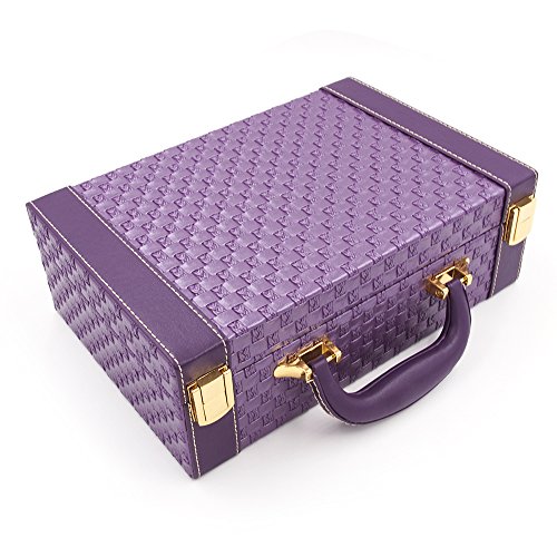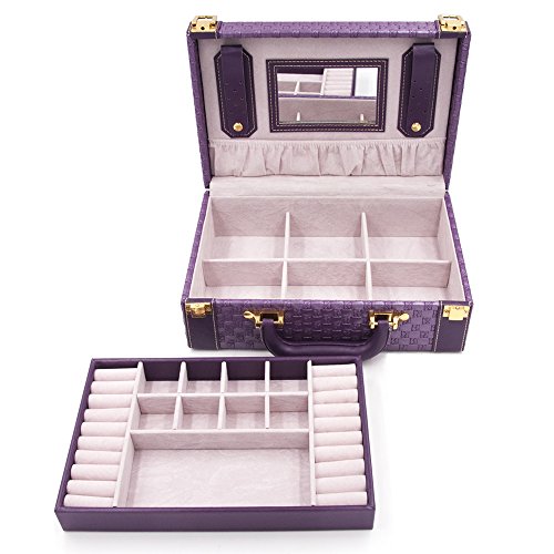 MISYLPH Multifunctional Two-Layer Woven Leather Jewelry Box Organizer with Handle (Purple)