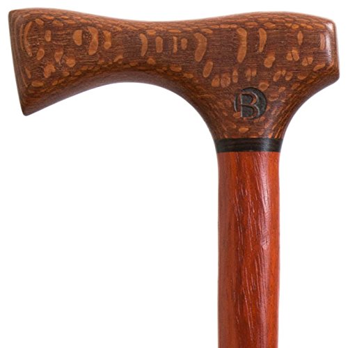 A One-of-a-Kind “Select” Wood Walking Cane from Brazos Over the 20 years that Brazos Walking Sticks has been making handcrafted wood sticks and canes, we’ve received numerous requests for “special” canes, ranging from a retirement gift, a milestone birthday, or just a unique way to give recognition to someone who deserves it. When the request is made, we typically begin the process by sorting through our cache of exceptional wood. In the lumber business, the top grade for each species is often classified as “select” grade. This category of wood is used for projects that demand the highest quality, beauty and strength. This is exactly why we chose this term to identify our newest product offering. Our new Brazos Select Canes are made exclusively from select grade materials. These woods are sourced from reliable, sustainably harvested timber from all over the world. We then begin the meticulous process of choosing which pieces will make the best handles and strongest shafts for our exquisite walking canes. Using simple hand and power tools, our master craftsmen use time-tested wood working methods that ensure each cane meets our exacting standards. The natural beauty of the wood is enhanced with multiple coats of high-quality clear lacquer, then finished with a hand-rubbed process that sets our products apart from the mass produced, run of the mill factory canes. Whether you’re looking for a special gift or an heirloom quality walking aid, the refined elegance of Brazos Select Canes will surpass your highest expectations. Features - Made in the USA! Expert craftsmanship is at the forefront when creating this beautiful cane.