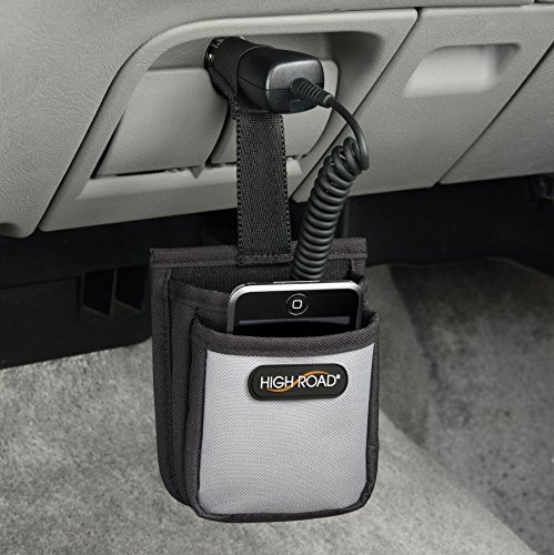 -. Binding : Automotive -. Brand : High Road -. Color : Gray -. Department : unisex-adult -. EAN : 0088838009570 -. Feature : Space saving phone holder stores and charges your smartphone while driving from an on-dash car power socket / Features 2 protective, soft pockets to hold smartphones with cords up to 3" wide / Simply place the cord plug through the elastic loop to suspend your phone securely while the car is in motion / Compact and lightweight, the High Road ChargerPockets caddy is perfect for smaller vehicles with limited front seat space / Made from heavy-duty polyester pack cloth, patented -. Label : High Road -. Manufacturer : High Road -. ManufacturerPartsWarrantyDescription : Parts -. Model : 750307 -. MPN : 750307 -. NumberOfItems : 1 -. PackageQuantity : 1 -. PartNumber : 750307 -. ProductGroup : Automotive Parts and Accessories -. ProductTypeName : AUTO_ACCESSORY -. Publisher : High Road -. ReleaseDate : 2012-10-06 -. Studio : High Road -. Title : High Road Charger Caddy Car Dash Phone Holder -. UPC : 088838009570