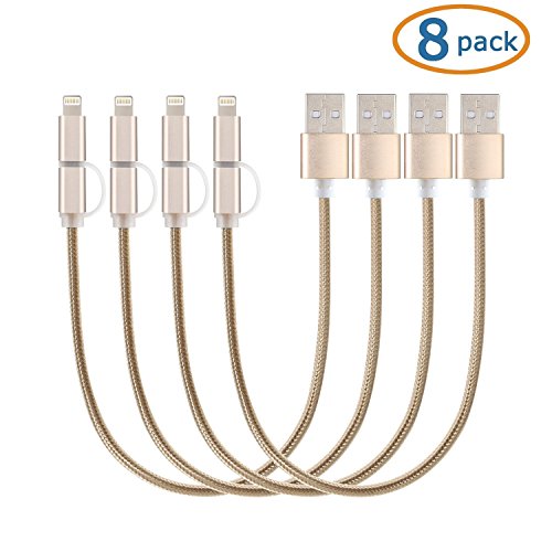 NexGadget 8 PACKS 2-in-1 High Speed USB Charging/Sync Data Cable [10 Inches] Nylon Braided Micro USB Cable Lightning Cable for iPhone 5/5S/6/6 Plus/6S/6S Plus/7/7 Plus Android Samsung